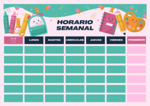 - Íconos y símbolos: Puedes usar íconos pequeños para representar diferentes tipos de actividades (por ejemplo, un libro para las clases académicas, una pelota para deportes, etc.). Esto añade un elemento visual que puede hacer que el horario sea más fácil de escanear rápidamente.