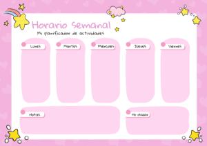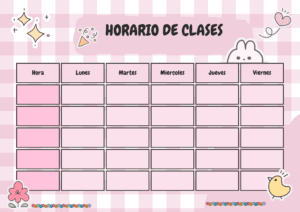 Si eres fanático de la cultura pop japonesa, te encantarán las plantillas de horarios kawaii. Estas plantillas suelen incluir personajes y elementos lindos que añaden un toque de diversión a tu rutina académica.