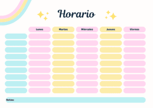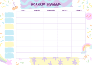 Si estás en busca de algo que no sólo sea funcional sino también agradable a la vista, las plantillas de horarios bonitos son tu mejor opción. Estas plantillas suelen tener diseños coloridos y elementos gráficos que hacen que tu horario se destaque.
