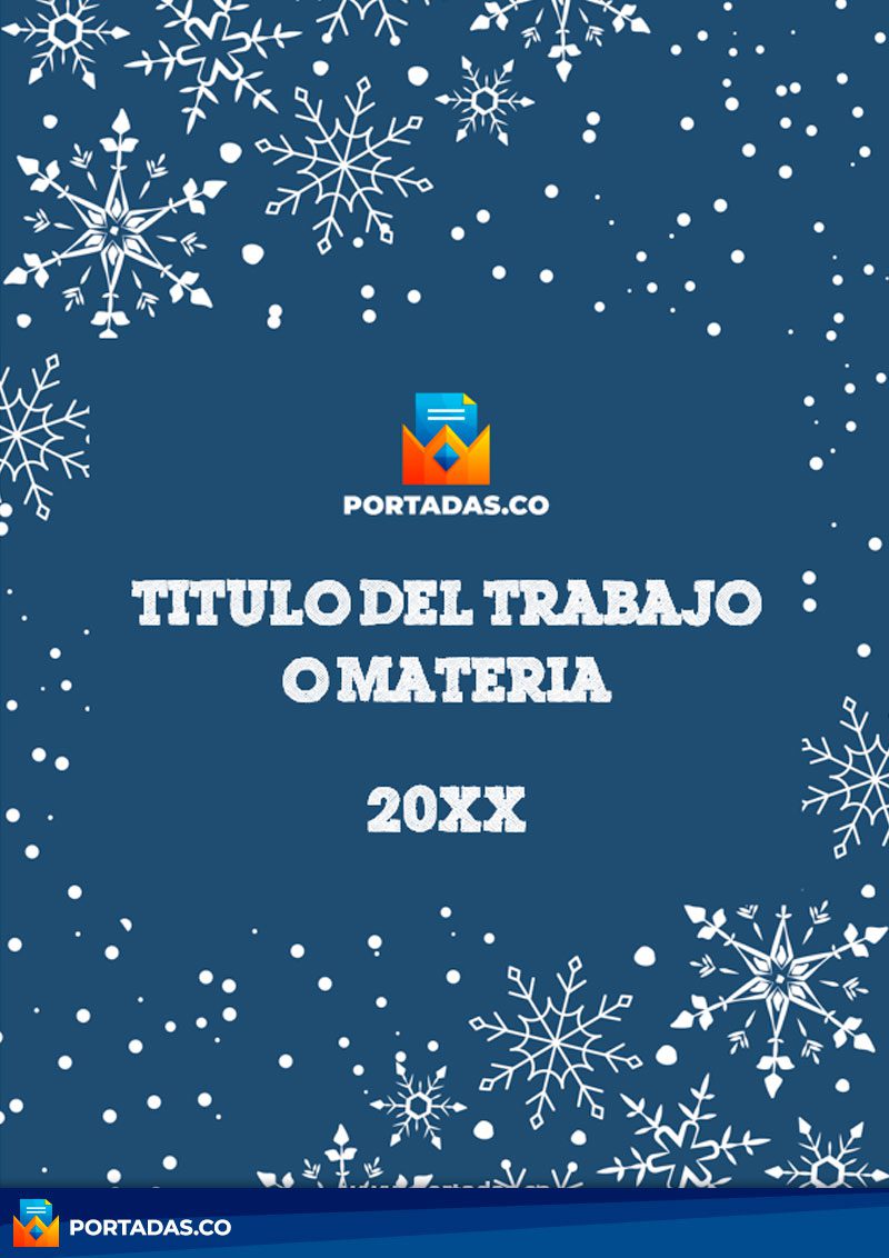 Portada Word para navidad, elaborada en base a un simple diseño de fondo azul y copos de nieve en color blanco, al igual que la fuente de los datos de presentación.