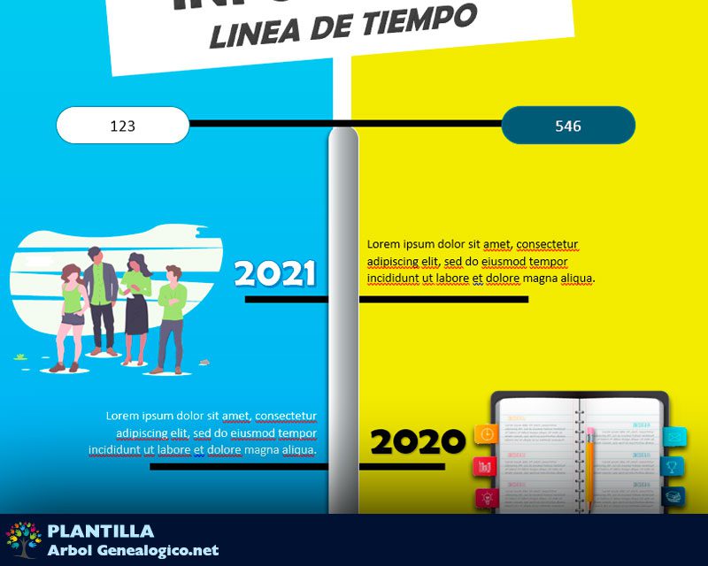 Linea de tiempo con diseño de infografía vertical. Su formato es Word, ideal para descargar e imprimir. Diseño creativo con colores amarillo y celeste que genera muy buen contraste visual.
