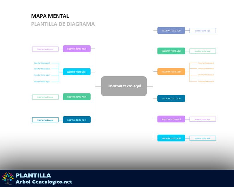 Bajar una Plantilla de Mapa Mental en Word clásica, con muchos colores para identificar las ideas que conectan a tu problema.