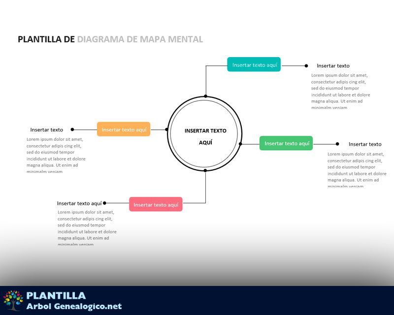 Obtén esta nueva plantilla de Mapa Mental en Word clásica y formal para una presentación importante, identifica las principales ideas que salen de tu palabra principal y completa con información relevante.