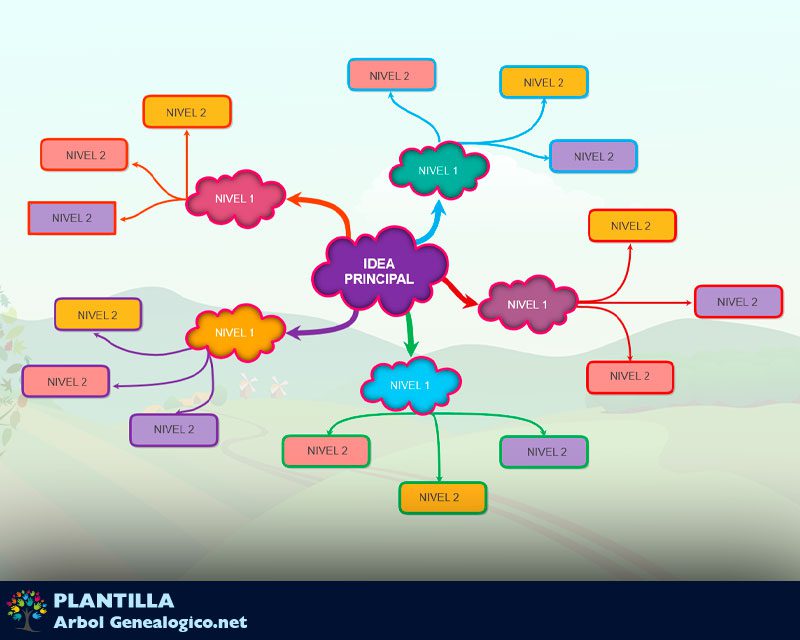 Descargar esta plantilla de Mapa Mental en PowerPoint con nubes de colores para identificar tus ideas principales y las secundarias, muy atractivo y juvenil.