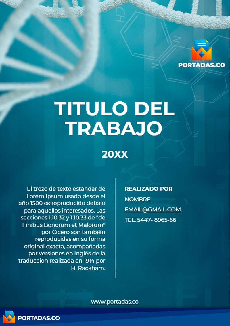 Es muy fácil de editar pues en el centro de la carátula está el espacio para agregar el titular, el año, nombre, email, teléfono e igualmente alguna descripción del proyecto.