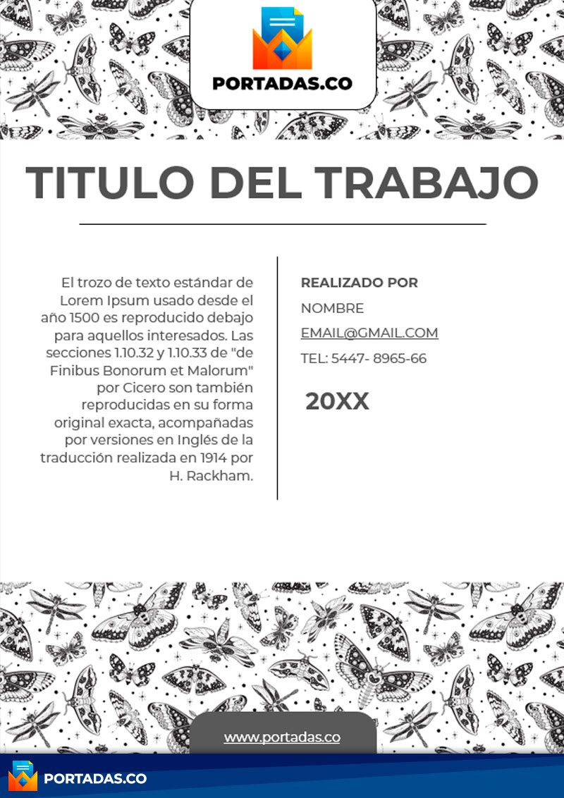 Portada de biología para trabajos en Word, se trata de una imagen con fondo blanco donde aparecen mariposas en la parte superior e inferior de la cubierta.