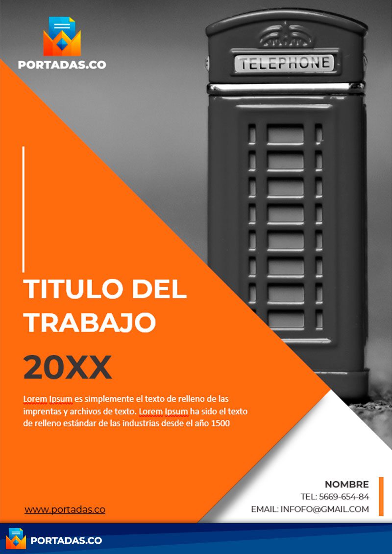 Portada para trabajos en colores gris, naranja y blanco, detallando en el fondo una cabina de teléfono clásica de las que vemos en películas antiguas de Londres.
