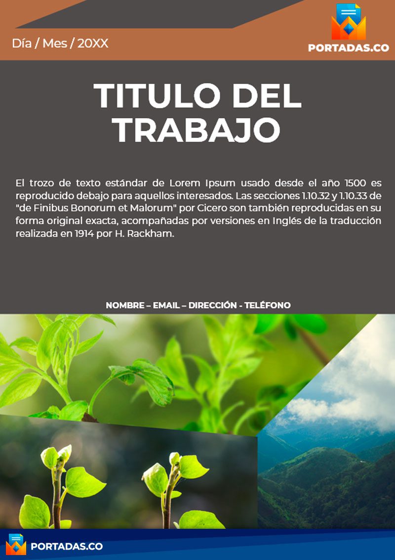Portada de ciencias naturales para trabajos en Word, la cual destaca por ser una representación gráfica donde aparecen plantas y montañas.