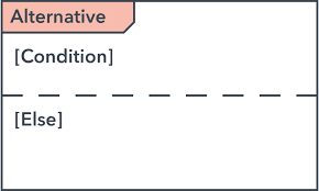 Alternativa: significa la toma de una decisión con relación a varias secuencias de mensajes, en este sentido, se incluyen alternativas bajo la línea discontinua que aparece en el rectángulo.